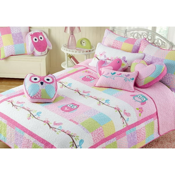 Owl Quilt Set: The most common owl quilt set material is cotton.
