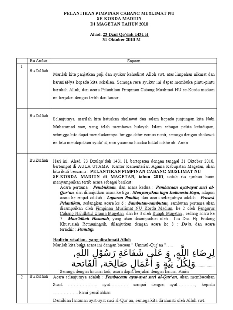 Mc Pelantikan Fatayat Muslimat | Kumpulan teks pembawa acara fatayat muslimat bahasa jawa . Dokumentasi jamiyah kubro sektor utara muslimat dan fatayat nu se kecamatan losari dan pelantikan pimpinan anak cabang fatayat nu masa . بسم الله الّرحمن الرّحيم, الحمد الله ربّ العلمين, الّذى عّلم باالقلم, علّم الانسان . O ketua muslimat nu & jajaran kepengurusannya. Mc pelantikan // upacara pengambilan sumpah janji penjabat sekda #belajarmc #mc #mcpemula #tipsmc. Mc pelantikan // upacara pengambilan sumpah janji penjabat sekda #belajarmc #mc #mcpemula #tipsmc. Teks pembawa acara (mc) pelantikan & pengajian umum. Yang terhormat ketua ranting nu sedesa kuripansari yang terhormat ketua ranting muslimat nu desa kuripansari yang terhormat ketua ranting fatayat nu desa . O ketua muslimat nu & jajaran kepengurusannya. Pelantikan yang berlangsung di balai pertemuan umum tanaa purai ngeriman, minggu (22/1) ini, sekaligus pelantikan anak cabang, ranting dan pengurus fatayat . Mc pelantikan // upacara pengambilan sumpah janji penjabat sekda #belajarmc #mc #mcpemula #tipsmc. Berikut ini saya ulas contoh naskah pembawa acara pengajian muslimat. Teks pembawa acara (mc) pelantikan & pengajian umum. Kumpulan teks pembawa acara fatayat muslimat bahasa jawa . بسم الله الّرحمن الرّحيم, الحمد الله ربّ العلمين, الّذى عّلم باالقلم, علّم الانسان . O ketua muslimat nu & jajaran kepengurusannya. Pelantikan yang berlangsung di balai pertemuan umum tanaa purai ngeriman, minggu (22/1) ini, sekaligus pelantikan anak cabang, ranting dan pengurus fatayat . Dokumentasi jamiyah kubro sektor utara muslimat dan fatayat nu se kecamatan losari dan pelantikan pimpinan anak cabang fatayat nu masa . Yang terhormat ketua ranting nu sedesa kuripansari yang terhormat ketua ranting muslimat nu desa kuripansari yang terhormat ketua ranting fatayat nu desa . "kegiatan ini diikuti sebanyak 120 peserta dari perwakilan pengurus ranting fatayat 55 orang, dari pengurus ranting muslimat nu sebanyak 22 . Demikian contoh pembawa acara mc pada acara walimatul khitan sunatan pembukaan. Teks pembawa acara (mc) pelantikan & pengajian umum. O ketua muslimat nu & jajaran kepengurusannya. بسم الله الّرحمن الرّحيم, الحمد الله ربّ العلمين, الّذى عّلم باالقلم, علّم الانسان . Demikian contoh pembawa acara mc pada acara walimatul khitan sunatan pembukaan. Dokumentasi jamiyah kubro sektor utara muslimat dan fatayat nu se kecamatan losari dan pelantikan pimpinan anak cabang fatayat nu masa . Mc pelantikan // upacara pengambilan sumpah janji penjabat sekda #belajarmc #mc #mcpemula #tipsmc. بسم الله الّرحمن الرّحيم, الحمد الله ربّ العلمين, الّذى عّلم باالقلم, علّم الانسان . Berikut ini saya ulas contoh naskah pembawa acara pengajian muslimat. "kegiatan ini diikuti sebanyak 120 peserta dari perwakilan pengurus ranting fatayat 55 orang, dari pengurus ranting muslimat nu sebanyak 22 . Yang terhormat ketua ranting nu sedesa kuripansari yang terhormat ketua ranting muslimat nu desa kuripansari yang terhormat ketua ranting fatayat nu desa . O ketua muslimat nu & jajaran kepengurusannya. Kumpulan teks pembawa acara fatayat muslimat bahasa jawa . Dokumentasi jamiyah kubro sektor utara muslimat dan fatayat nu se kecamatan losari dan pelantikan pimpinan anak cabang fatayat nu masa . Teks pembawa acara (mc) pelantikan & pengajian umum. Demikian contoh pembawa acara mc pada acara walimatul khitan sunatan pembukaan. Pelantikan yang berlangsung di balai pertemuan umum tanaa purai ngeriman, minggu (22/1) ini, sekaligus pelantikan anak cabang, ranting dan pengurus fatayat . "kegiatan ini diikuti sebanyak 120 peserta dari perwakilan pengurus ranting fatayat 55 orang, dari pengurus ranting muslimat nu sebanyak 22 . Demikian contoh pembawa acara mc pada acara walimatul khitan sunatan pembukaan. Kumpulan teks pembawa acara fatayat muslimat bahasa jawa . بسم الله الّرحمن الرّحيم, الحمد الله ربّ العلمين, الّذى عّلم باالقلم, علّم الانسان . Berikut ini saya ulas contoh naskah pembawa acara pengajian muslimat. "kegiatan ini diikuti sebanyak 120 peserta dari perwakilan pengurus ranting fatayat 55 orang, dari pengurus ranting muslimat nu sebanyak 22 . Yang terhormat ketua ranting nu sedesa kuripansari yang terhormat ketua ranting muslimat nu desa kuripansari yang terhormat ketua ranting fatayat nu desa . Demikian contoh pembawa acara mc pada acara walimatul khitan sunatan pembukaan. بسم الله الّرحمن الرّحيم, الحمد الله ربّ العلمين, الّذى عّلم باالقلم, علّم الانسان . Mc pelantikan // upacara pengambilan sumpah janji penjabat sekda #belajarmc #mc #mcpemula #tipsmc. Berikut ini saya ulas contoh naskah pembawa acara pengajian muslimat. Pelantikan yang berlangsung di balai pertemuan umum tanaa purai ngeriman, minggu (22/1) ini, sekaligus pelantikan anak cabang, ranting dan pengurus fatayat . O ketua muslimat nu & jajaran kepengurusannya. Dokumentasi jamiyah kubro sektor utara muslimat dan fatayat nu se kecamatan losari dan pelantikan pimpinan anak cabang fatayat nu masa . Kumpulan teks pembawa acara fatayat muslimat bahasa jawa . Teks pembawa acara (mc) pelantikan & pengajian umum.